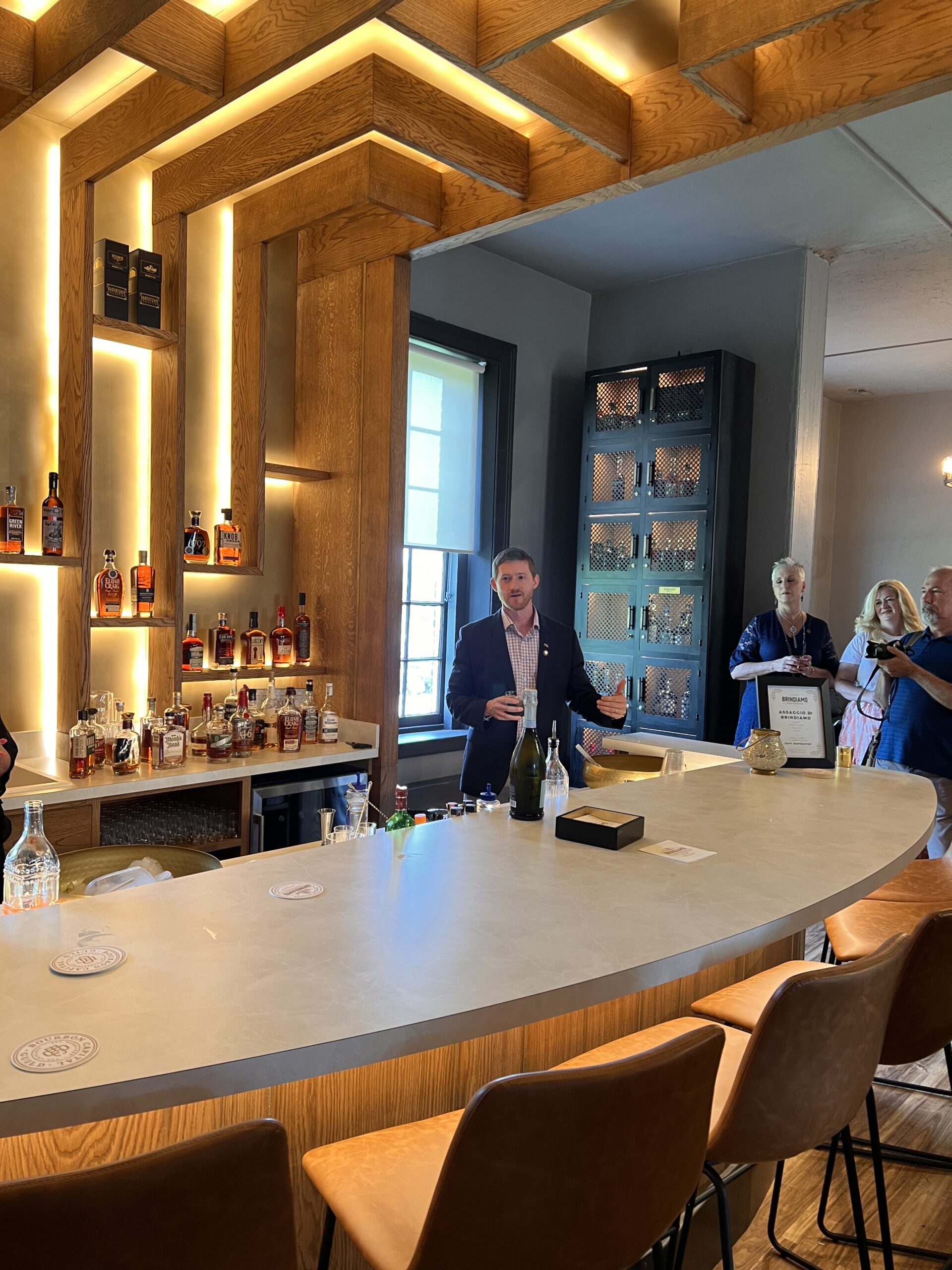 The Bourbon Capital Alliance, in partnership with the Kentucky Bourbon Festival, has announced the opening of the Brindiamo Penthouse on the top floor of historic Spalding Hall in Bardstown, Kentucky, the Bourbon Capital of the World. This highly curated location was fully funded by a donation from Nashville-based Brindiamo Group, a leading beverage alcohol industry consulting firm specializing in sourcing whiskey. Joseph & Joseph was chosen as the architect and interior designer for the groundbreaking project. Sam Lacy, Executive Director of the Bourbon Capital Alliance, said “We are incredibly appreciative of the Brindiamo Group. The Bourbon Capital Guild will utilize the Brindiamo Penthouse for member meetings, tastings, and increased exposure to our nine partner distilleries. Also, having a purpose-built classroom for the Bourbon Capital Academy will allow us to craft an interactive bourbon education experience replete with sensory components, experiential aspects, and our Taste of Bardstown flight board with delicious bourbons from our partner distilleries.