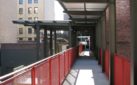 Addressing the need to connect the theatre and lobbies to the conference center, upper levels, and kitchen and restroom support spaces in the Brown Theatre buildings this lighted, three-story glass and steel lobby with elevator provides a signature backstage entrance. The exterior stair and bridge to the garage give a sense of arrival to the backstage. The plaza, with new paving, lighting and theatre signage re-invents the alley as a pedestrian-friendly space that still serves as a functional delivery and stage load-in area when needed.
